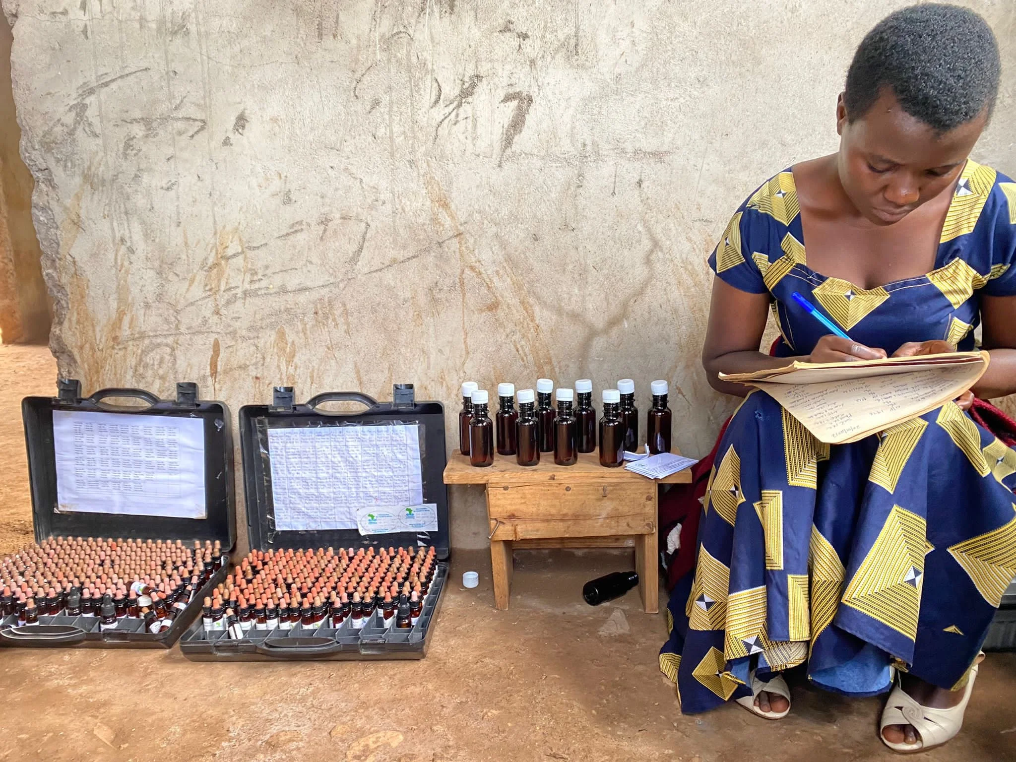 Vanessa Mrema, student homeopath with Homeopathy for Health in Africa, preparing for an outreach clinic